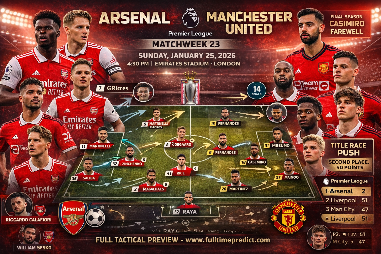 As we approach EPL Week 23, this clash carries renewed significance. Arsenal are deeply entrenched in the title race, while Manchester United are navigating a transitional season, balancing tactical evolution with the pressure of elite expectations. What unfolds at the Emirates is not just a football match—it is a tactical chess battle that could define momentum for the remainder of the season.