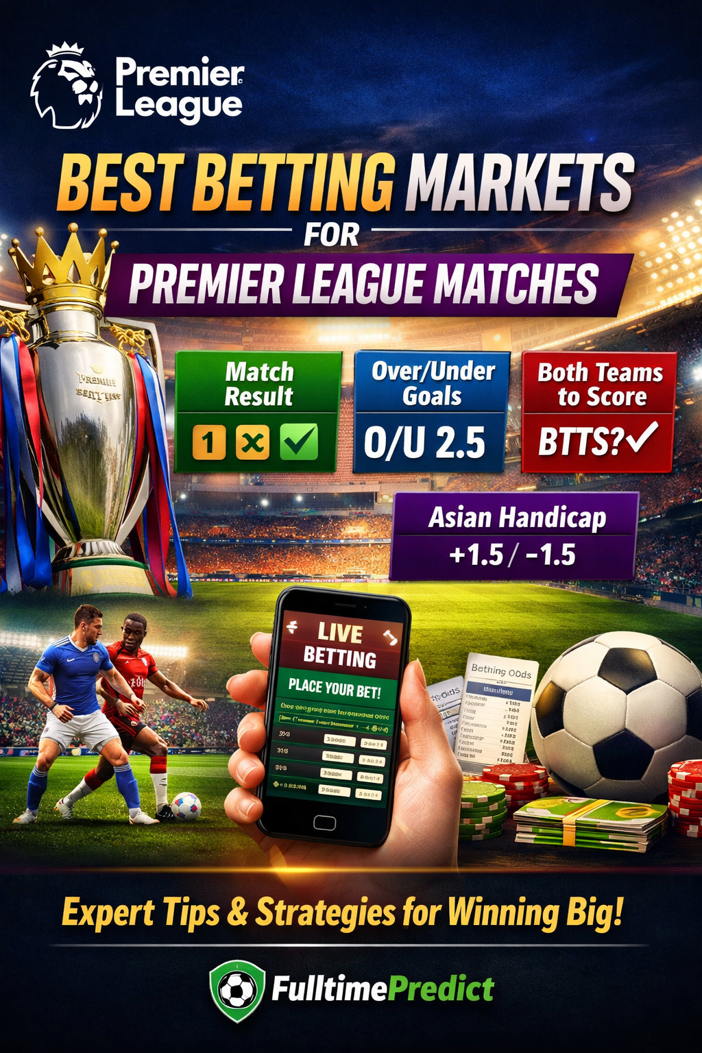 Top-ranking betting guides consistently emphasize that the market selection often matters more than predicting the correct match winner. Rewriting and expanding on those expert insights, this in-depth FulltimePredict guide explores the best betting markets for Premier League matches, explaining how they work, when to use them, and how smart bettors gain an edge.