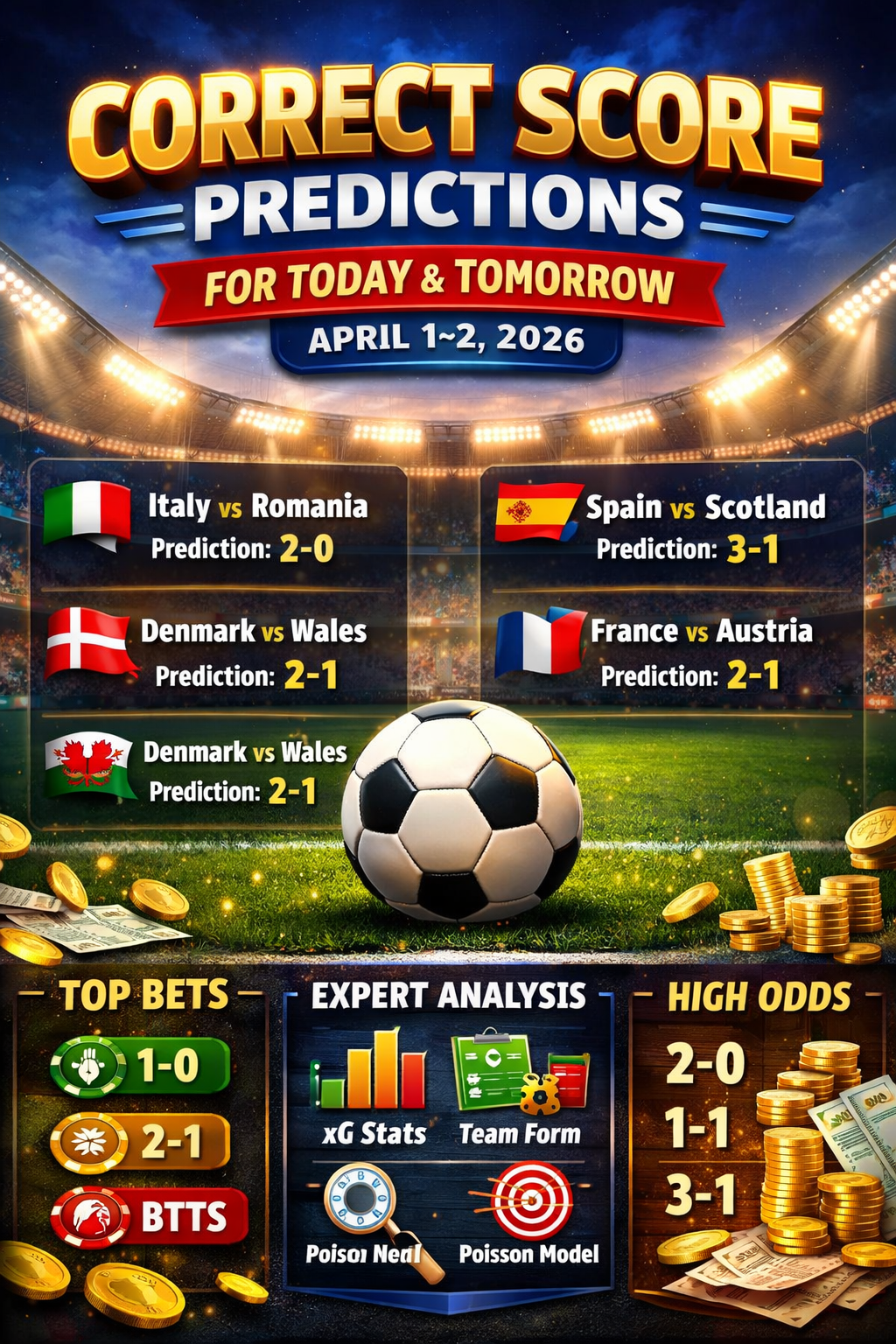 🔥 Today’s Correct Score Predictions (April 1, 2026)