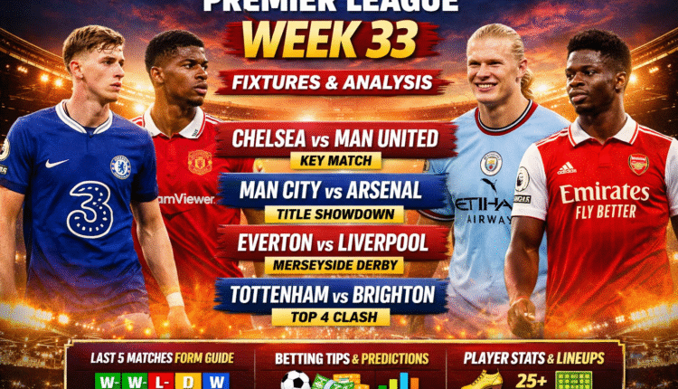 The Premier League Week 33 fixtures arrive at a decisive stage of the season where titles, top-four places, European qualification, and relegation battles are all reaching critical tension points.