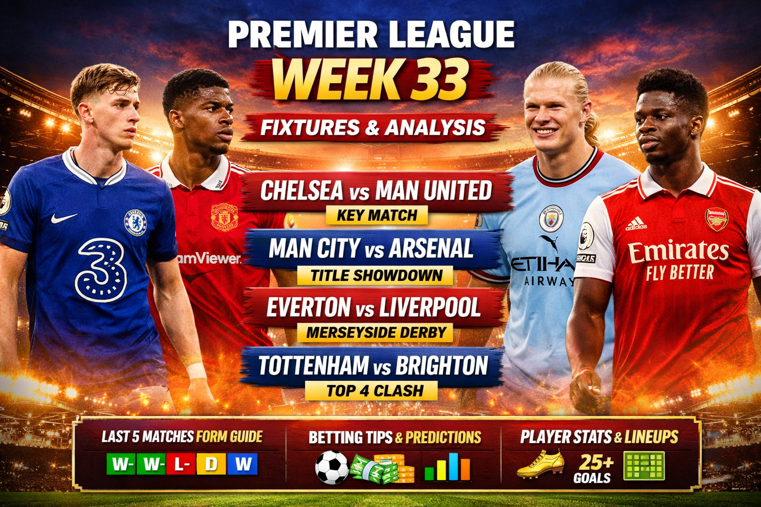 Premier League Week 33 is one of the most decisive weeks of the season, featuring: