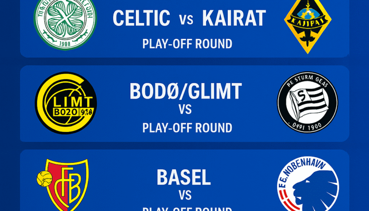 Tonight’s top fixtures include Celtic vs Kairat Almaty, Bodø/Glimt vs Sturm Graz, Basel vs Copenhagen, and Fenerbahçe vs Benfica—all part of the crucial play-off round.