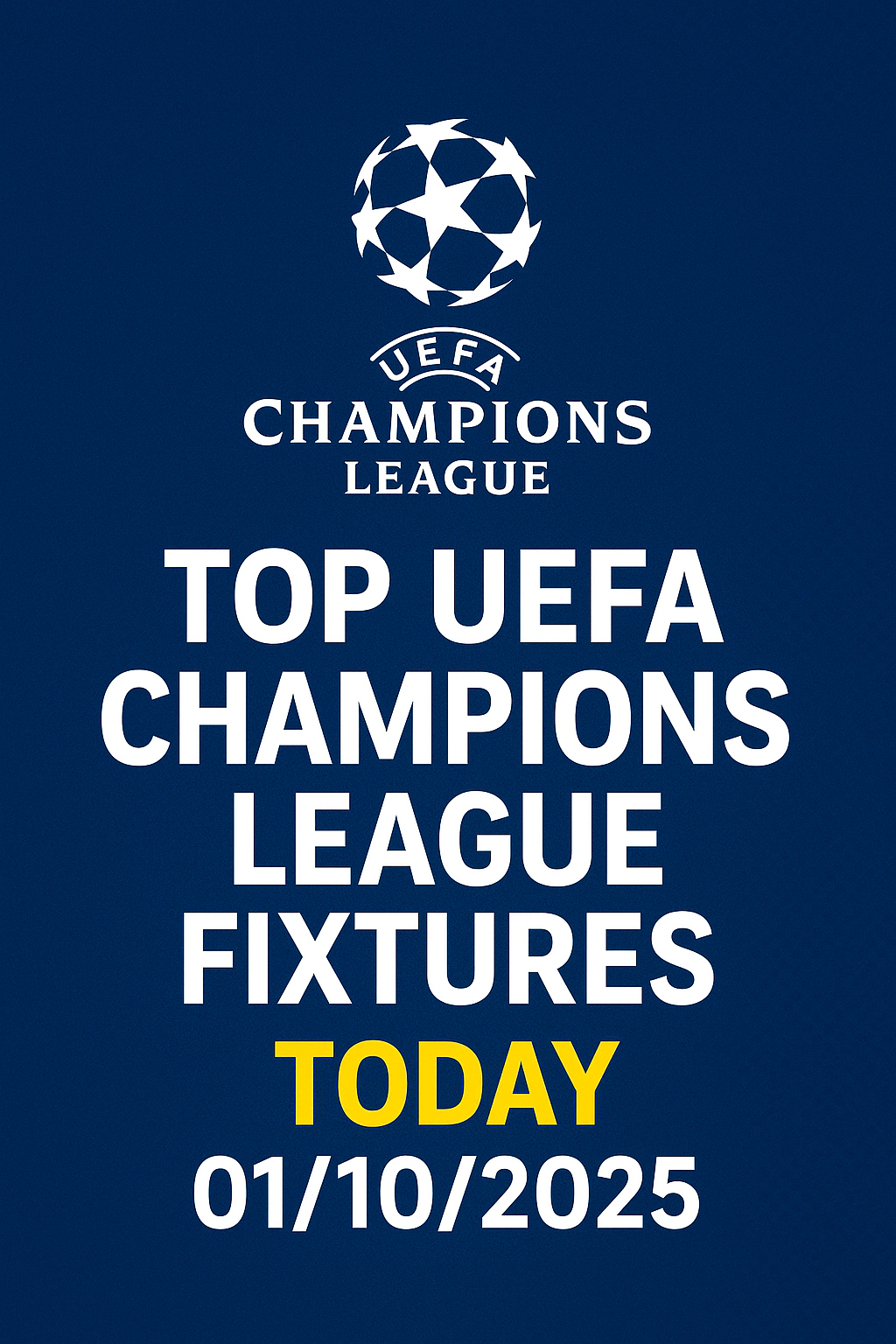This guide to TOP UEFA Champions League Fixtures Today 01/10/2025 provides match-by-match previews, probable starting XIs, H2H context, form analysis, key injuries, and concise predictions with recommended markets. Use our internal live feed for minute-by-minute updates: FulltimePredict fixtures & live scores.