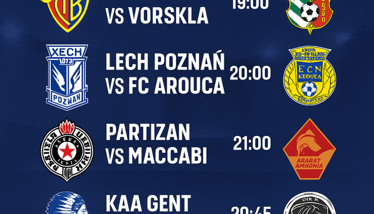 FC Basel, KAA Gent, and Lech Poznań are strong favorites in their respective fixtures.