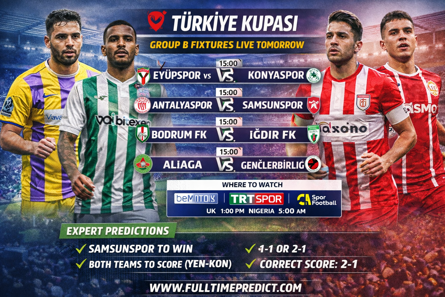 Tomorrow’s Turkiye Cup Group B fixtures are: